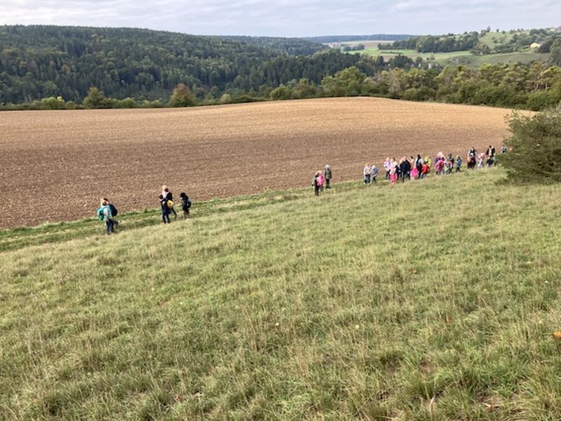 Nachdem der Wandertag aufgrund des schlechten Wetters um eine Woche verschoben werden musste, war es am 29.9.25 endlich soweit. Alle Klassen der Grundschule machten sich gleich nach Unterrichtsbeginn gemeinsam auf den Weg und wanderten der Laber entlang zum Haus Werdenfels. Von dort ging es auf einem schmalen Pfad über die Jurahänge bergauf zum Modellflugplatz. Dort wartete die wohlverdiente Pause. Nach reichlich Zeit für Brotzeit, Spiel und Spaß ging es auf direktem Weg über Steinerbrückl zurück zum Schulhaus.